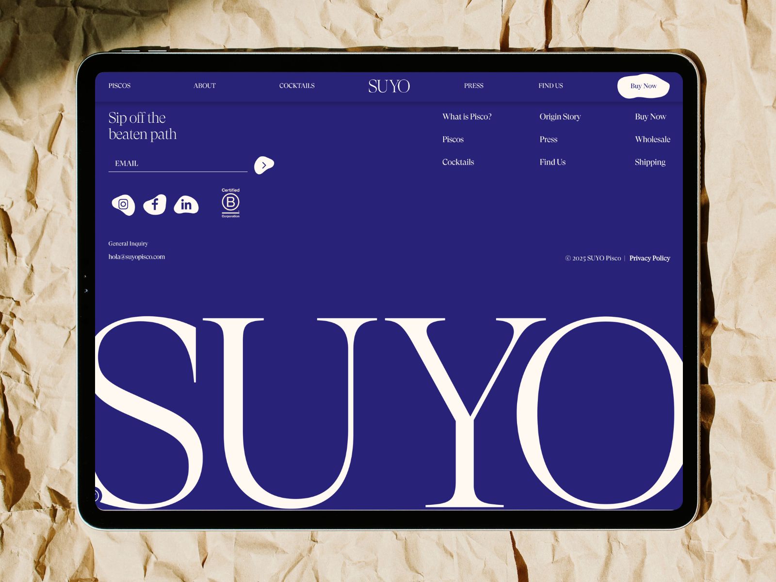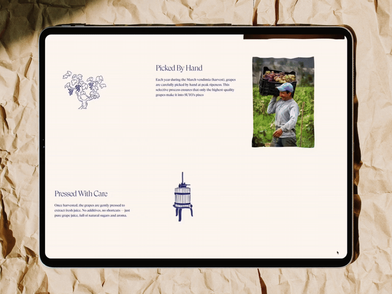 We designed an immersive, storytelling-driven website for SUYO Pisco that elevates single-origin, small-batch Peruvian pisco through cinematic visuals, terroir-driven narratives, and intimate producer profiles. The site pairs premium craft cues with practical commerce and compliance features—age verification, state-aware shipping flows, and bilingual content—so visitors can learn, savor, and purchase with confidence.